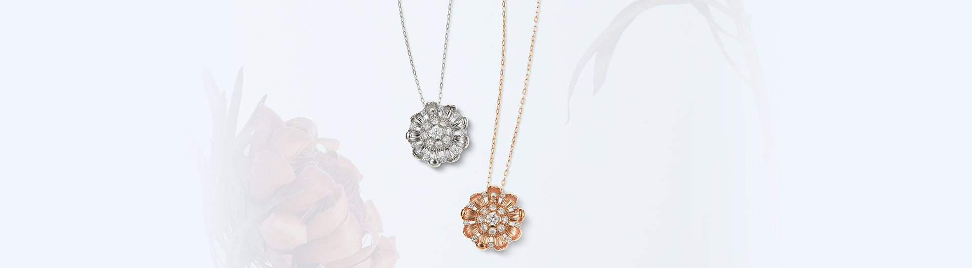 Bijoux spéciaux créés à partir du contenu original "SA MAGAZINE", qui est publié en série sur le site officiel de Sabers. Le pendentif créé avec Mme Hiroko Hatano, qui est apparue dans la première édition, est basé sur le motif du petro, une fleur originaire d'Afrique du Sud qui donne l'impression d'être en fleur.